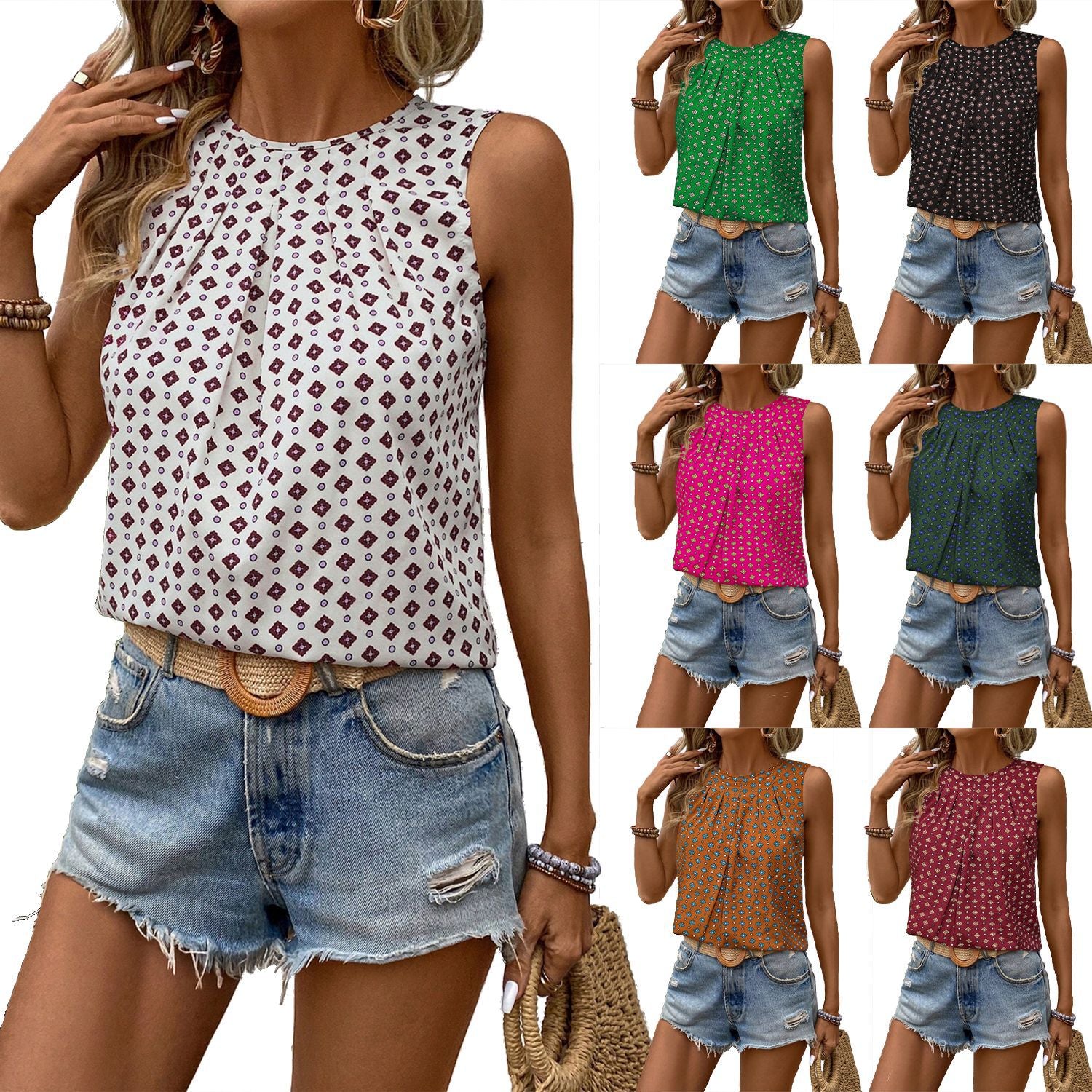 بلوزة فضفاضة بسيطة بدون أكمام بتصميم متناسق مع جميع الأزياء الأوروبية والأمريكية