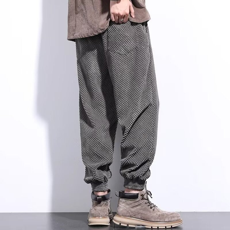 بنطال رياضي رجالي كاجوال سميك مبطن بالصوف مزدوج الجوانب