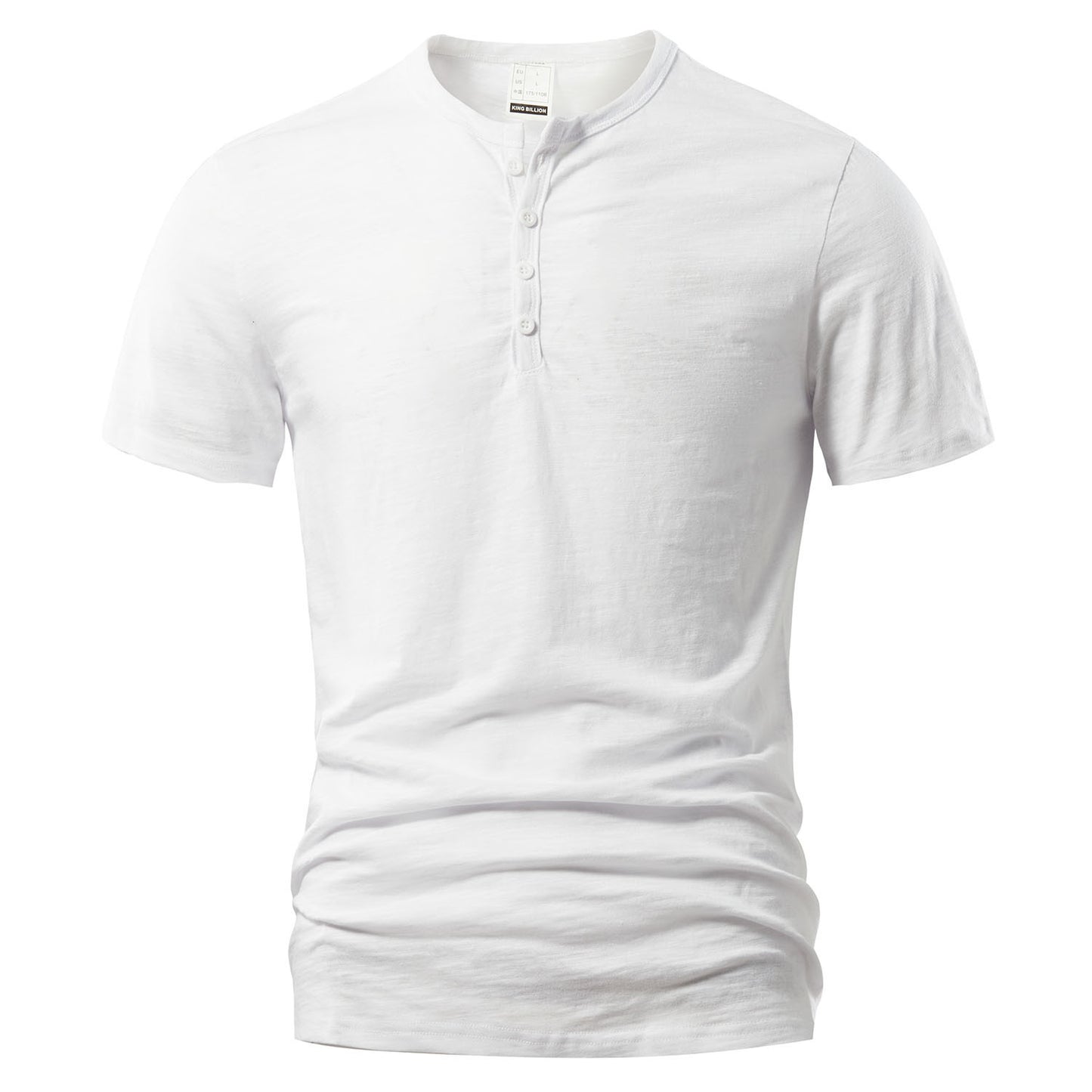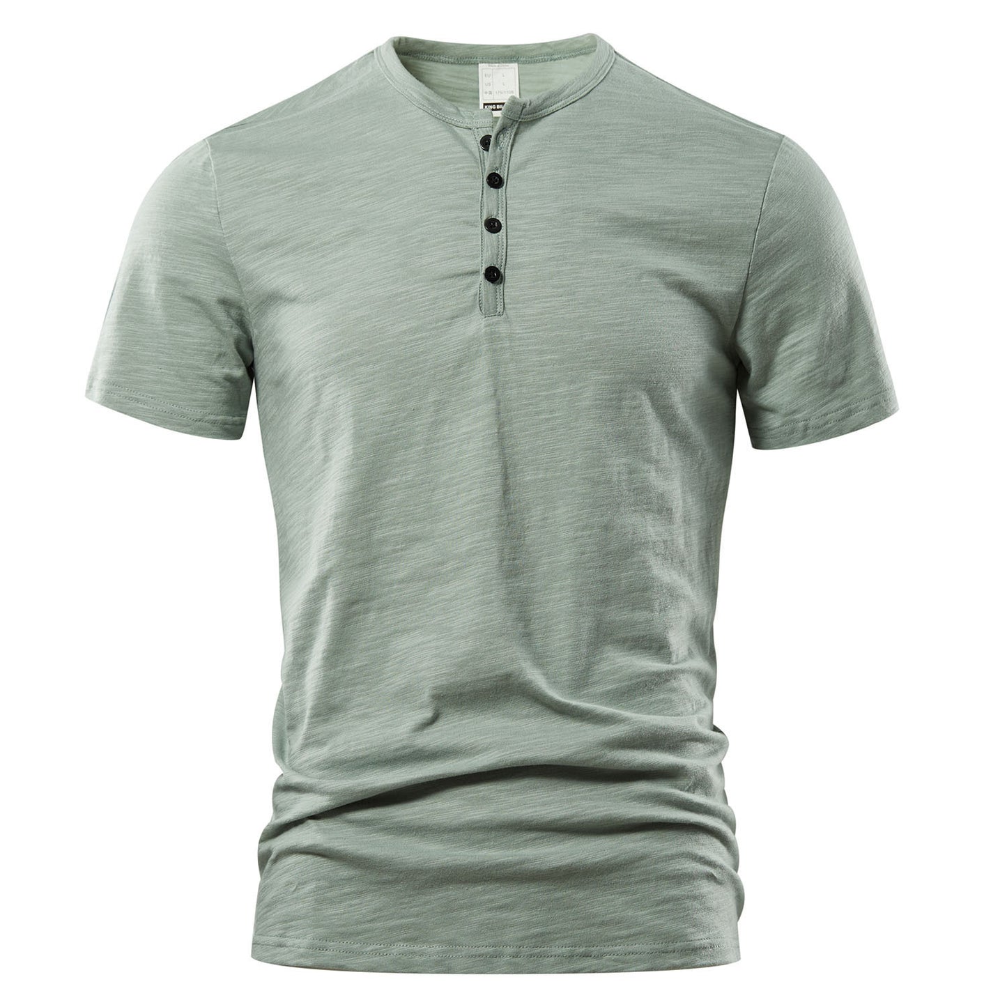 قميص رجالي كاجوال من القطن بأكمام قصيرة بلون سادة
