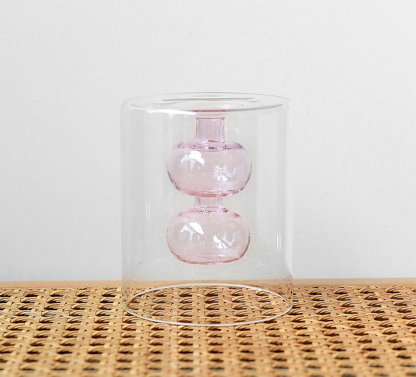 مزهرية زجاجية ملونة عتيقة على شكل قرع ونباتات مائية
