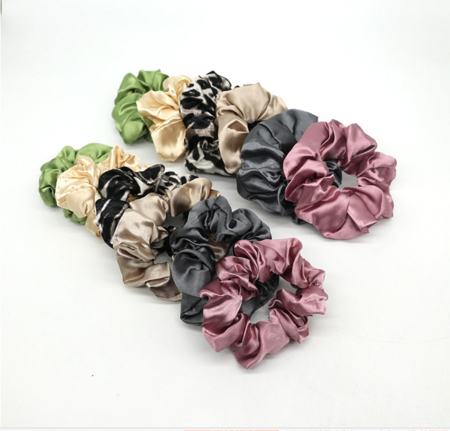 عصابة رأس فرنسية من الساتان للنساء بلون سادة وحلقة شعر للأمعاء الغليظة من الساتان اللامع