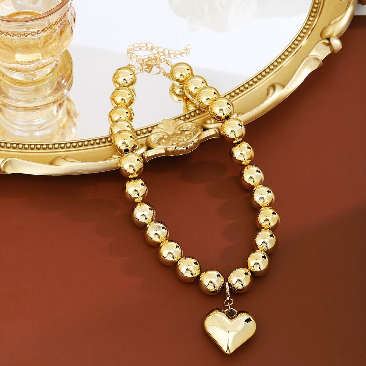 Simplicity And Exaggeration Personality Geometry Round Bracelet Love Heart Necklace Suit