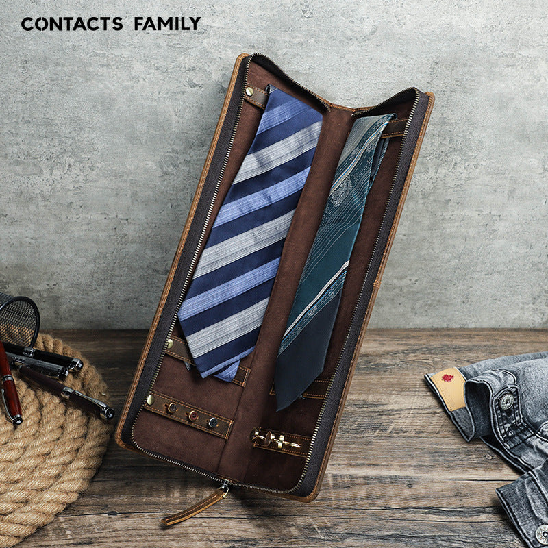 Vintage Crazy Horse Leather Men's Tie Storage Box