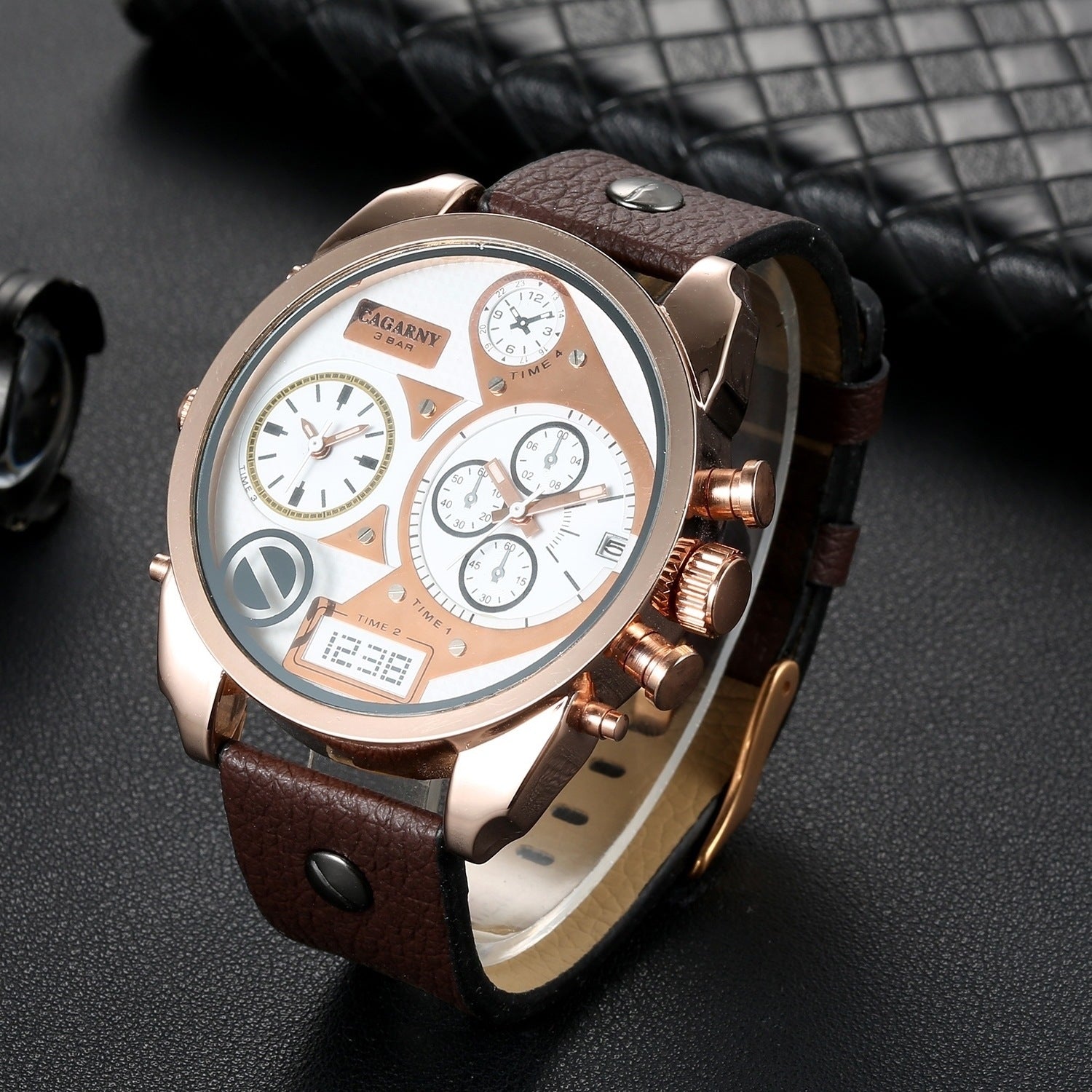 New Men's Quartz Watch Single Calendar Three Needle Leather Belt Waterproof