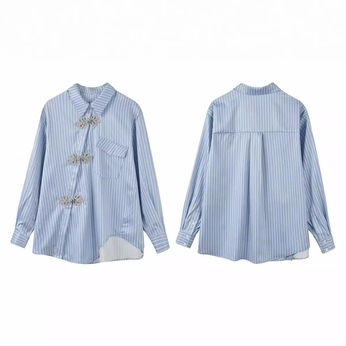 New Chinese Style High-grade Irregular Blue Shirt For Women