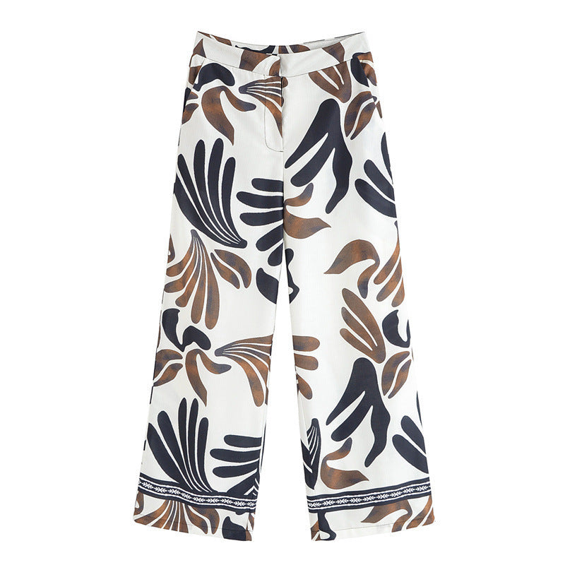 Spring And Summer European And American Wind Waist Vintage Floral Print Casual Trousers