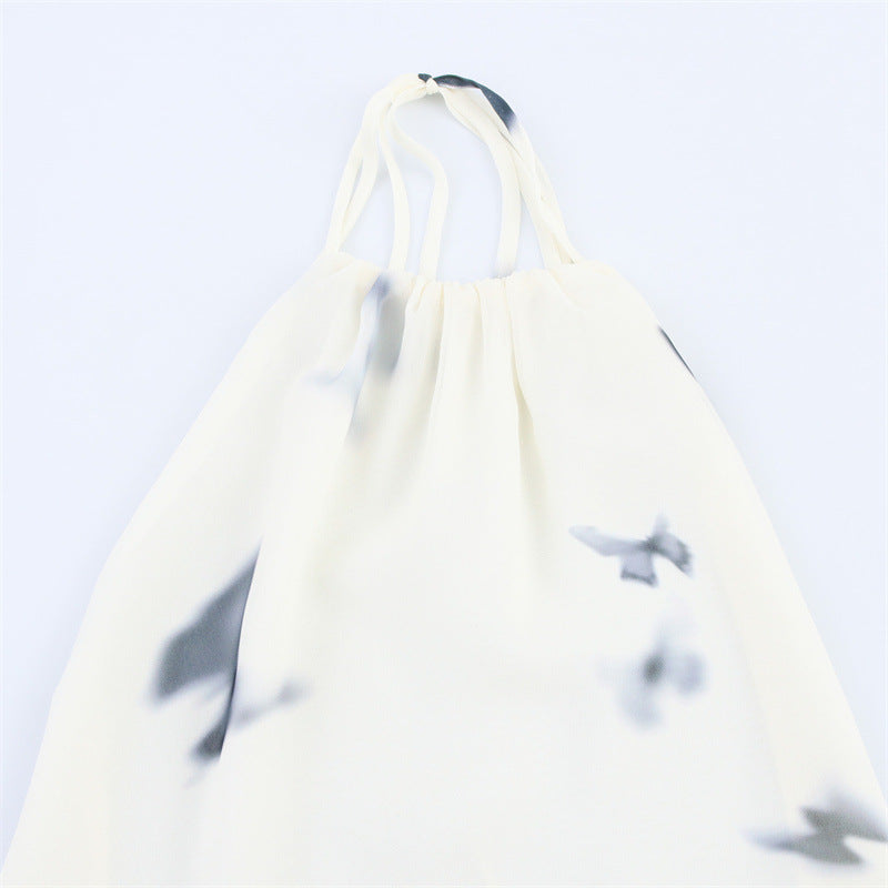 Backless Animal Print Hanging Collar Long Dress