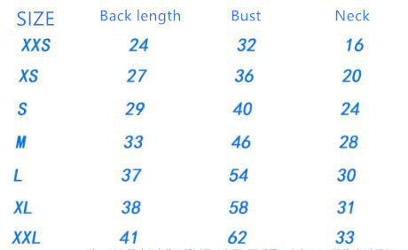 Size: XS code, S code, M code, L code, XL code, XXL code, XXS code