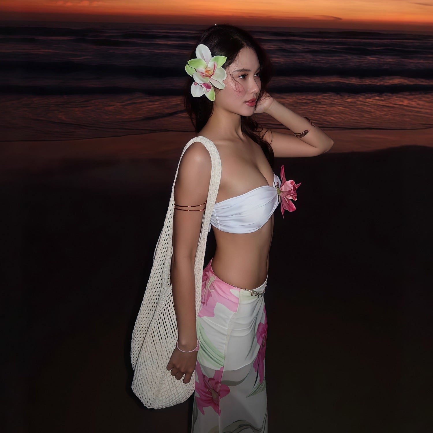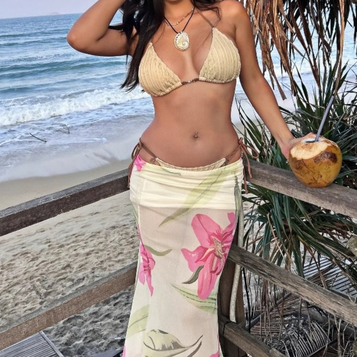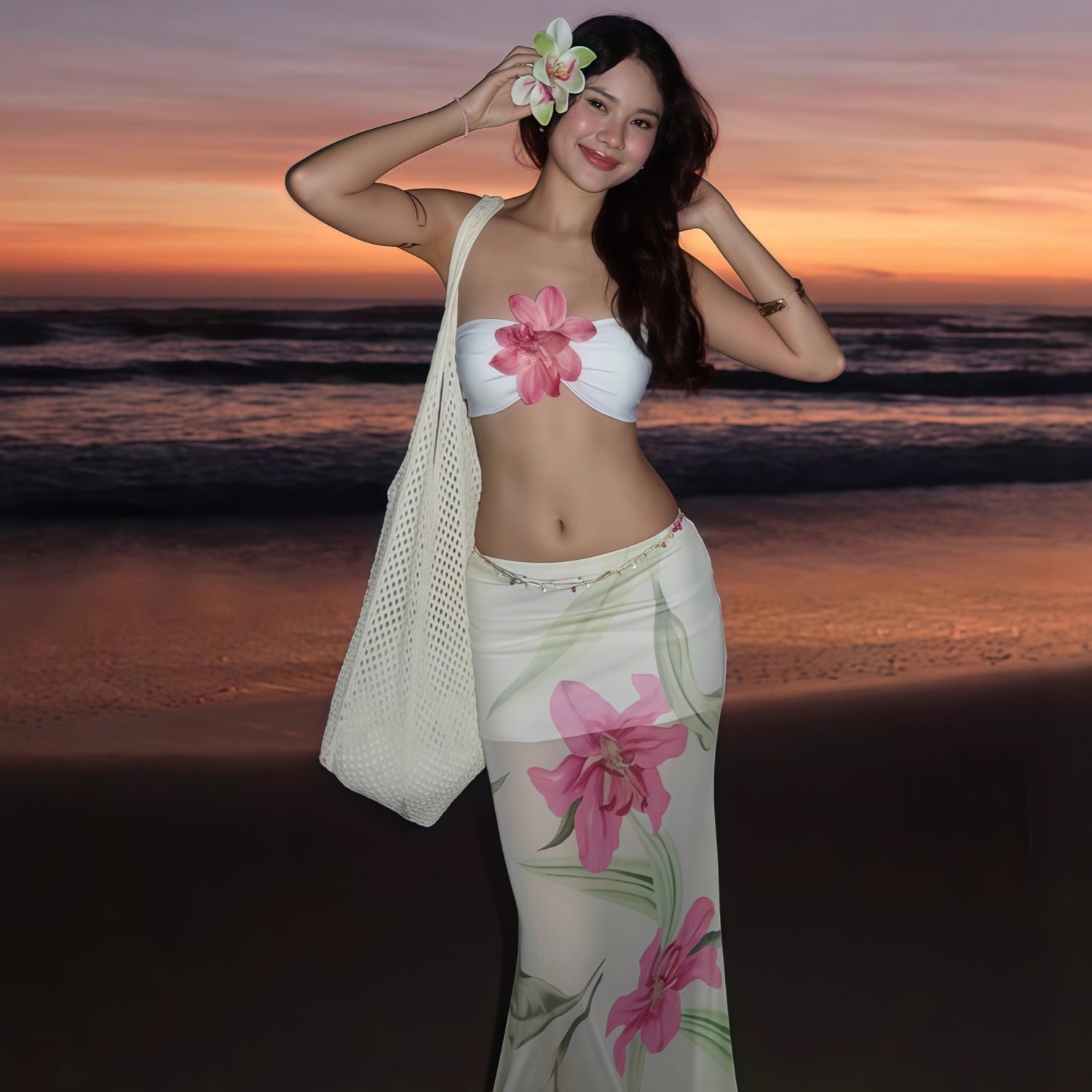 Dopamine Beach Vacation Pure Desire Style Printed Mesh Sheath Skirt