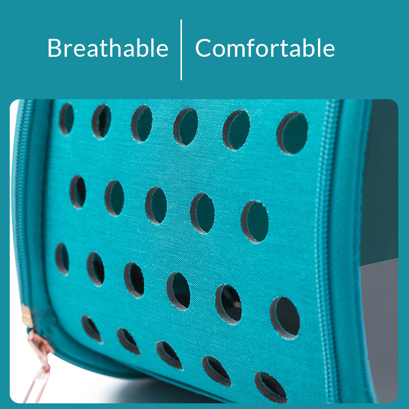 2. Transparent design, allow your pet to view sunshine and scenery from the outside world. Several ventilation holes on the side of the backpack, provide suffient air circulation, make your pet breathe comfortably.