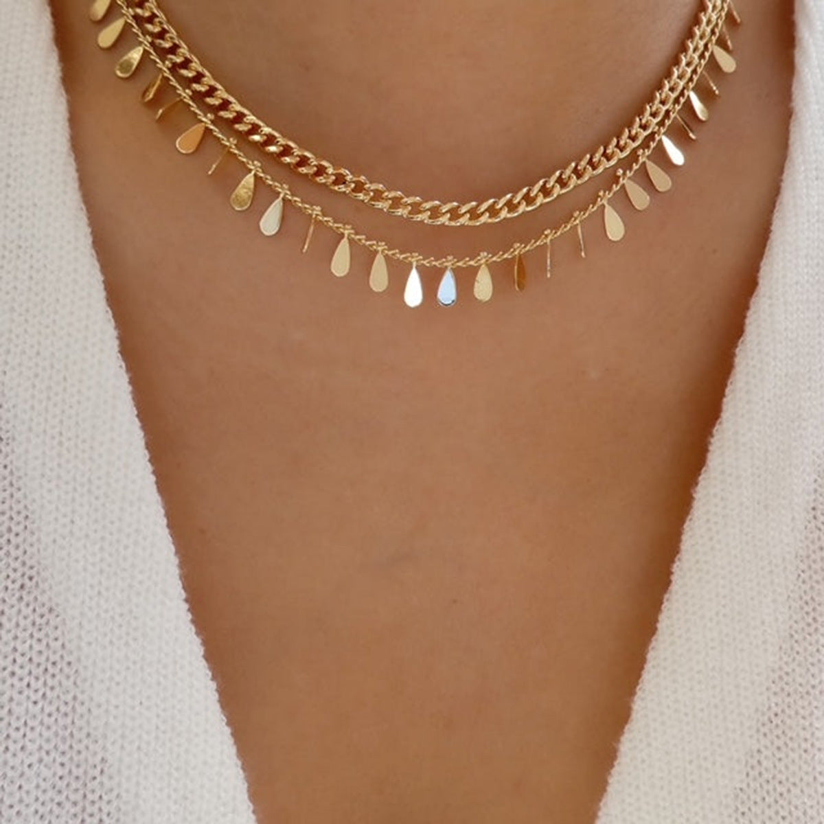Drop Shape Sequin Commuter Net Red Wind Necklace