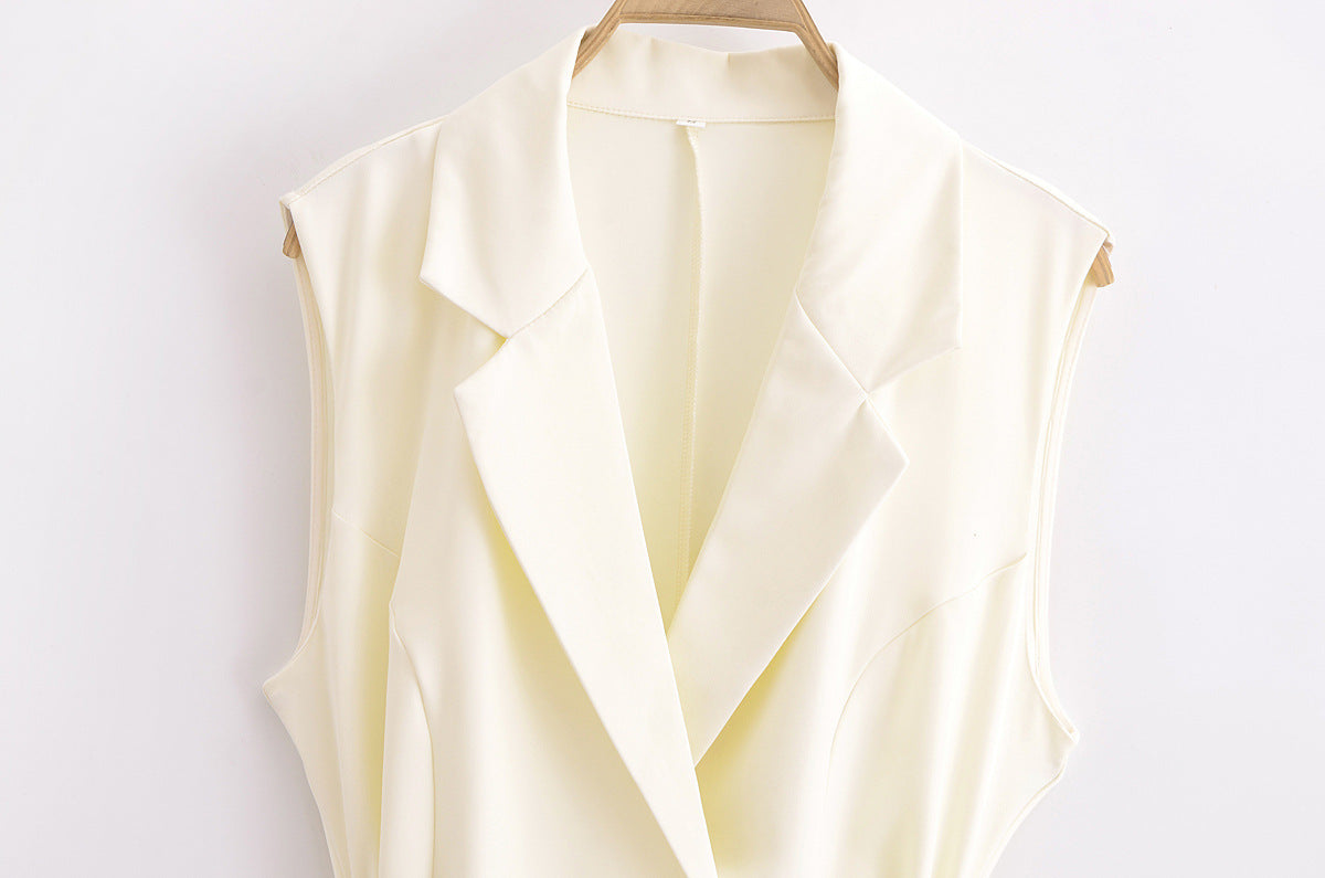 European And American Double Breasted With Belt Vest Pleated Skirt Dress