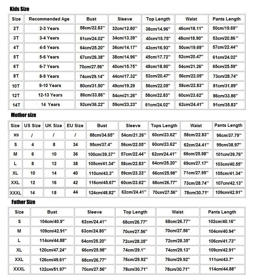 Suitable height: Father s size, Father M size, Father L, XL for father, dad XXL, dad 3XL, S for Mother, Mother M, mother's size L, mom XXL, mom 3XL, Kid 2T, Kid 3T, Kid 4T, children 5T, children 6T, children 8T, children 10T, children 12T, children 14T, baby 60(0-3M), baby 70(3-6M), baby 80(9-12M), baby 90(12-18M)