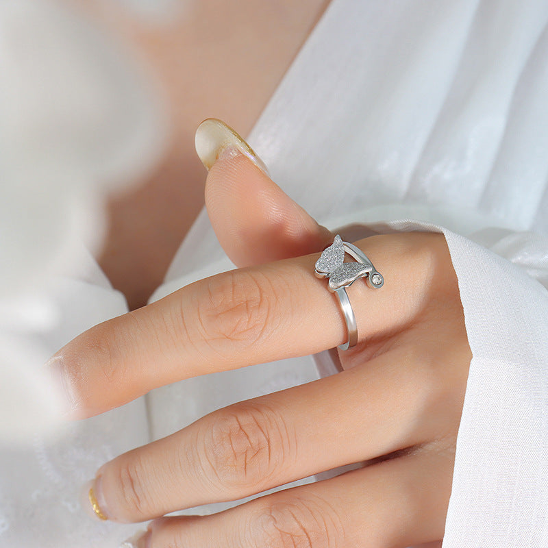Frosted Texture Cute Butterfly Titanium Steel Suit Necklace Earring Ring Ornament