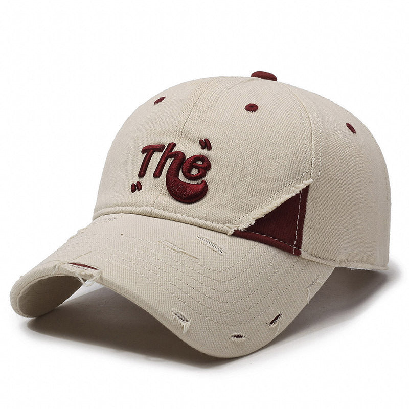 Korean Style Ripped Special Letter Embroidered Baseball Cap Big Brim