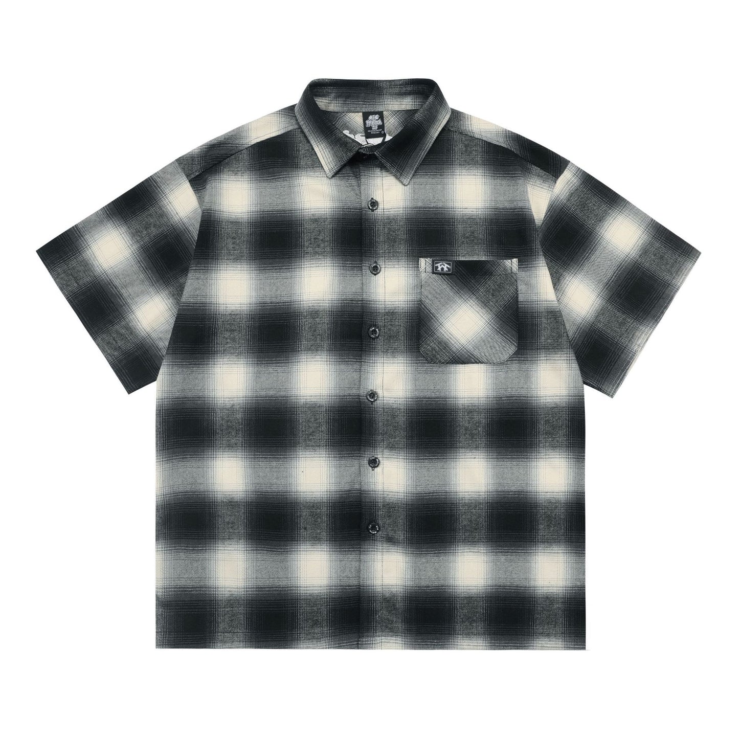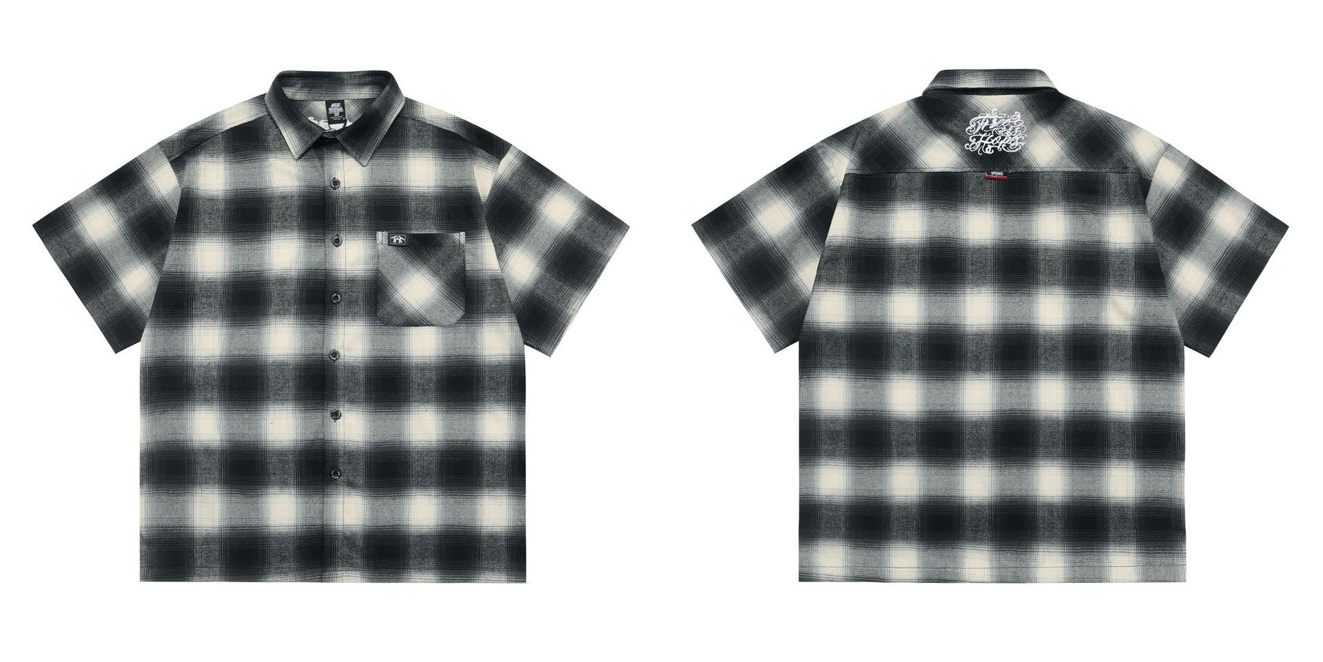 Large Plaid Classic Pocket Half Sleeve Cardigan Short Sleeve Shirt