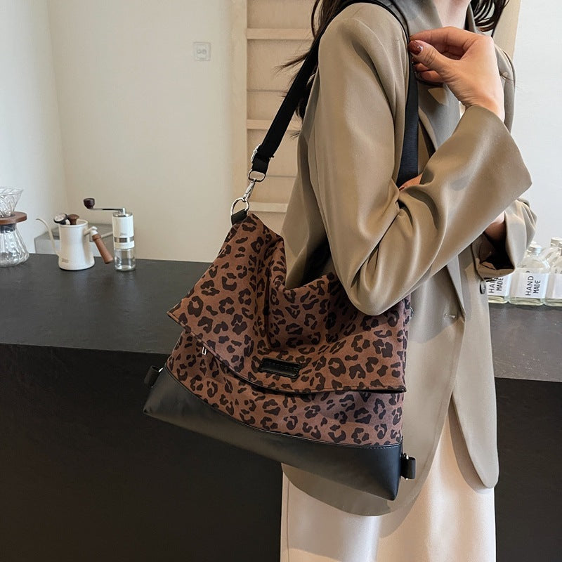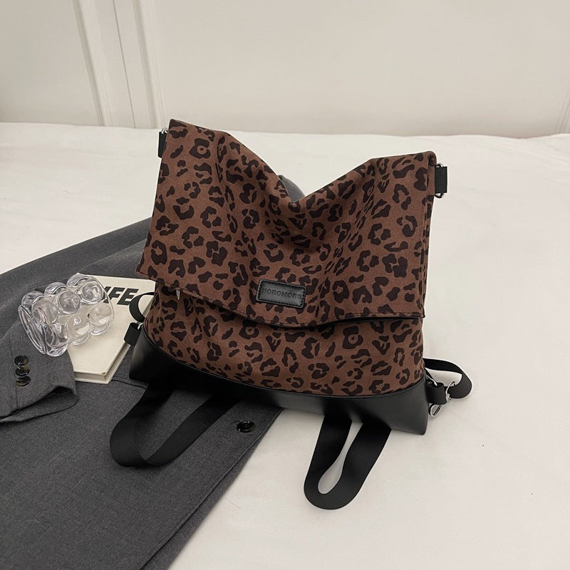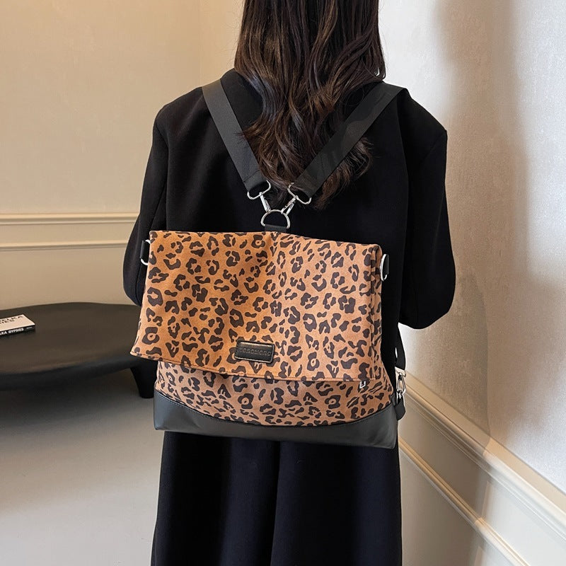 Multi-purpose Casual Fashion Temperament Leopard Print Leather Velvet Backpack Women's Bag