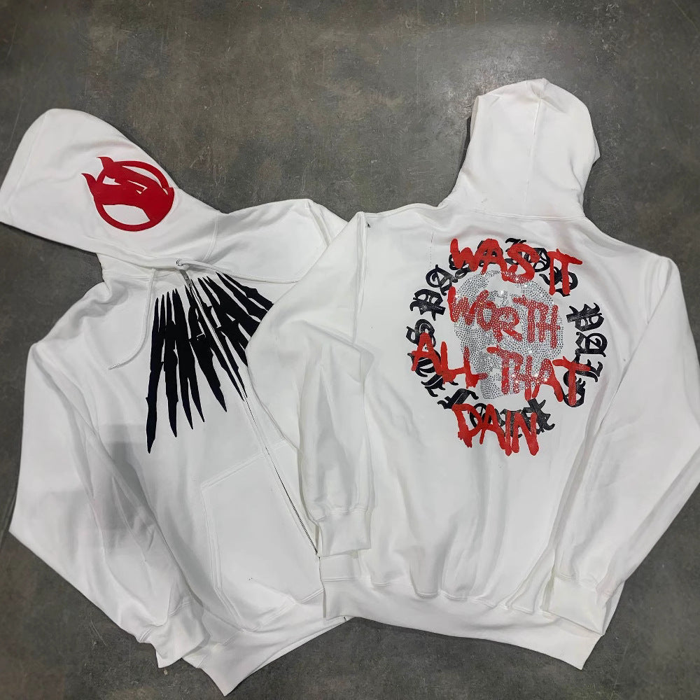 Printed Skull Hot Rhinestone Loose Hooded Sweatshirt