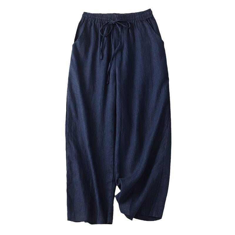 Retro Cotton And Linen Cropped Wide-leg Pants Women