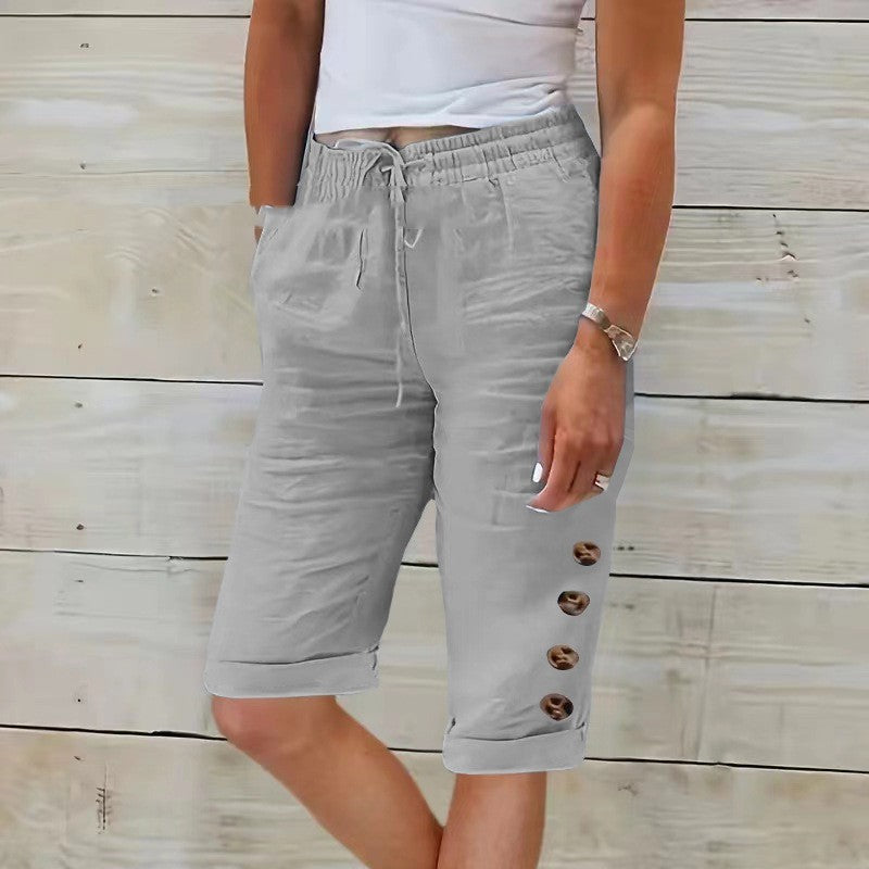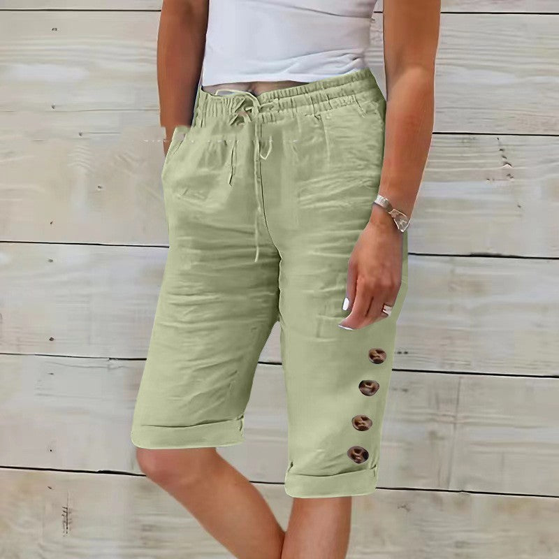 Summer Elastic Waist Solid Color Cotton Linen Wide Leg Pants