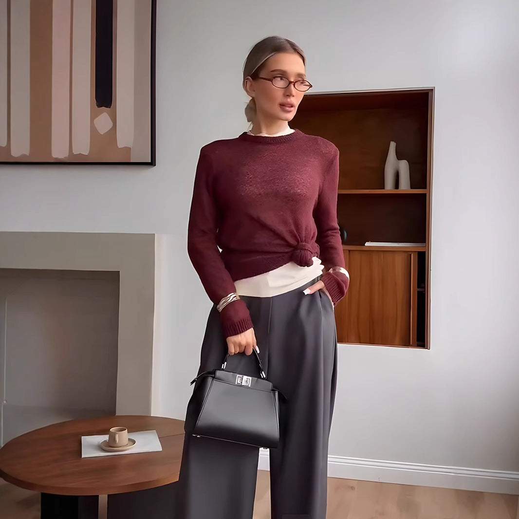 Sweater Blouse Women's Round Neck European And American Style See-through
