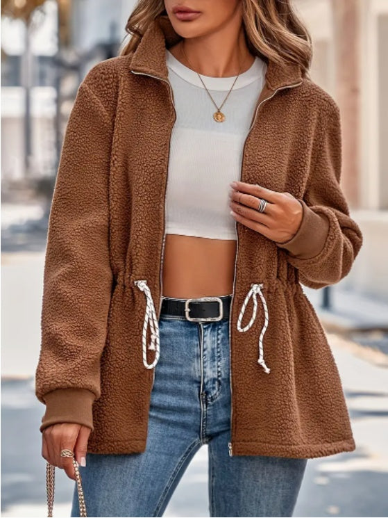 Women's 2024 Autumn Winter Casual Loose-Fit Long Sleeve Jacket With Adjustable Drawstring Waist